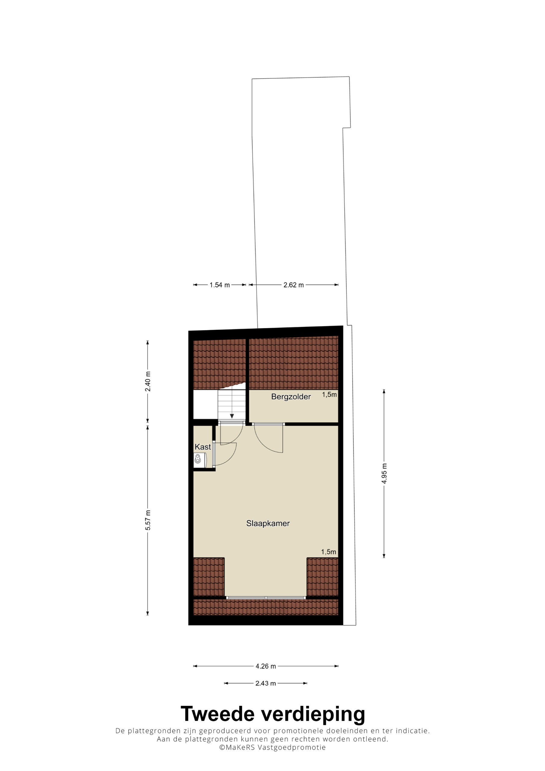 – slaapkamer 2: 3.97 x 2.65m, gelegen aan de achterzijde van de woning