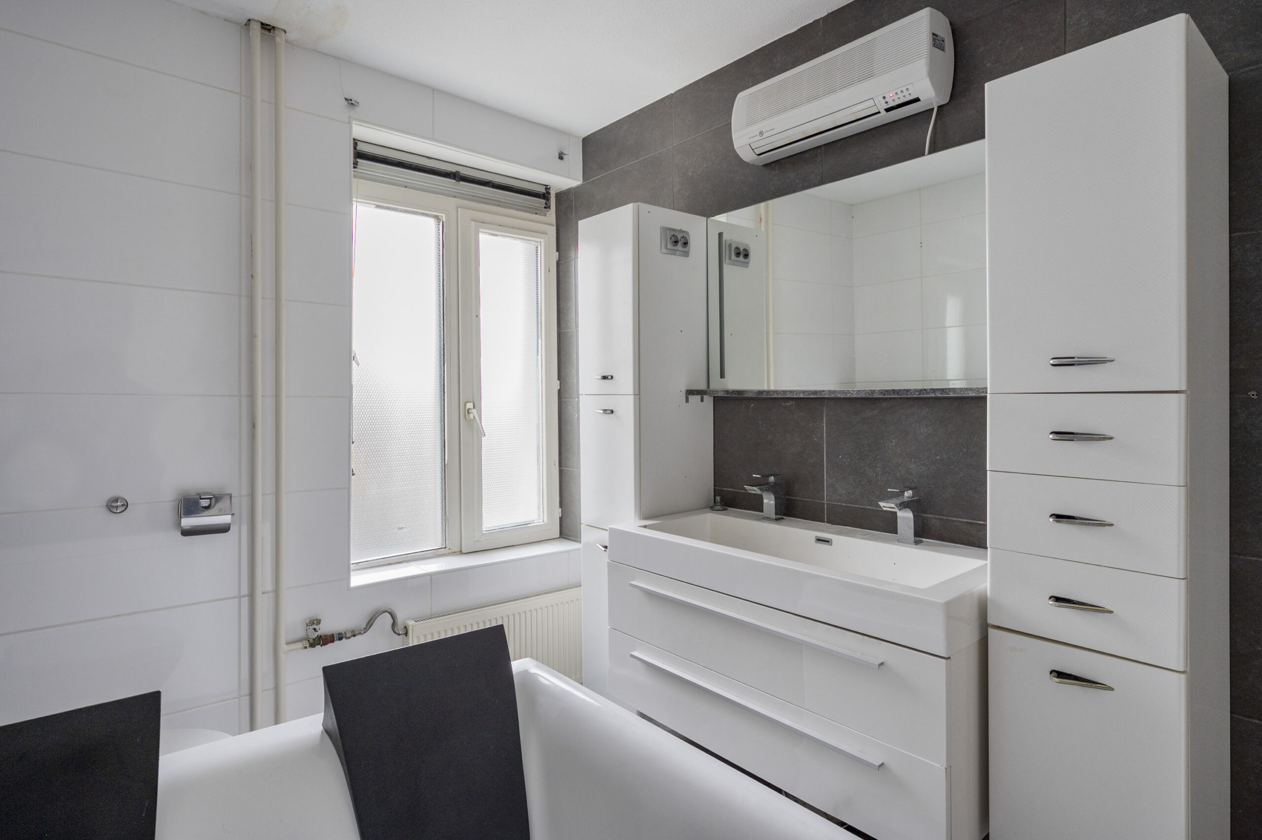 – geheel betegelde badkamer (2.84 x 2.11m) welke is ingedeeld met een ligbad, een wastafel verwerkt in een badmeubel en een toilet